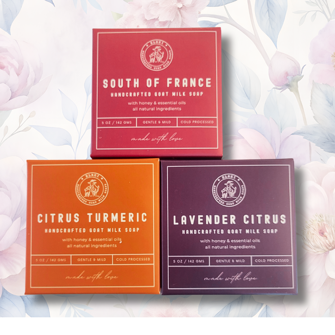 Experience the gentle, nourishing care of ELREI’s handmade goat milk 3 bars variety bundle, crafted with 100% natural goat milk soap. Each bar is cold processed in small batches to preserve natural benefits, free from palm oil and any artificial additives. This assortment offers a pure, expert-formulated option for those seeking effective, skin-friendly cleansing with responsibly made, wholesome ingredients. (5 oz, 3-bars)