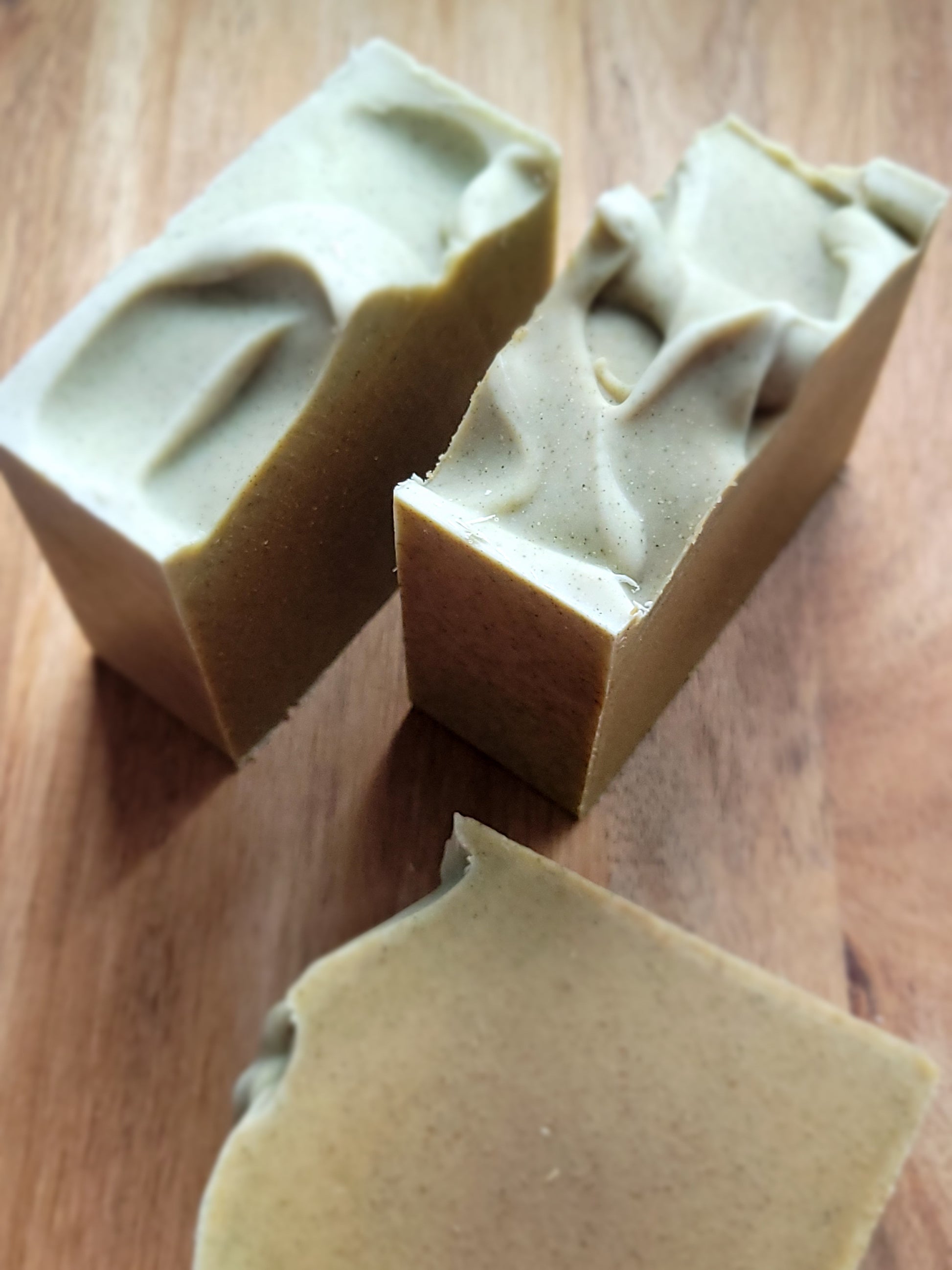 Ingredients: Saponified organic extra virgin coconut oil, olive oil, sweet almond oil, organic shea butter, organic cocoa butter, and castor oil. Goat milk powder, organic raw honey, organic nettle leaf powder, sodium lactate, and essential oil blend for scent.
